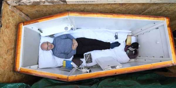 İrlanda vatandaşı 61 yaşındaki John Edwards, ilginç bir şekilde yerin altına yerleştirdiği tabutta yaşıyor.